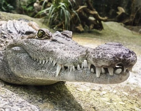 Photo: a close-up of a crocodile, a “living fossil” (like the pager)